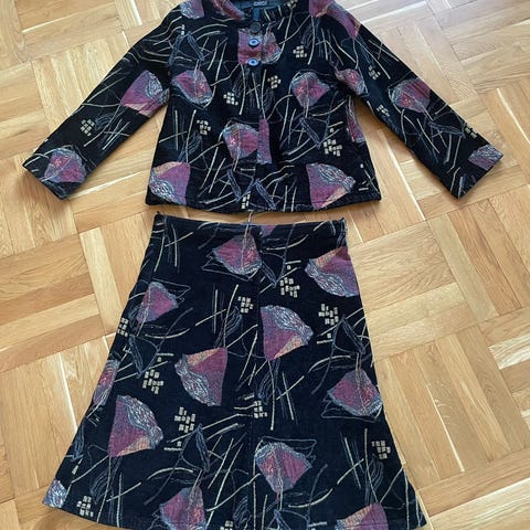Sort bunn med blomstermønster. Maskinsydd fald.