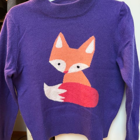 Verdens fineste cardigan til ei lite prinsesse. Hullmønster med pen korssting broderi og treknapper. Den er som nytt, brukt til pent par ganger. 95% bomull og 5% cashmere. 98-104 i størrelsen
