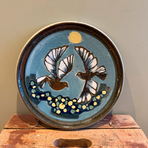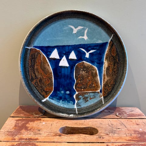Innpresset merke “RORSTRAND” og initialer “J S” på baksiden. Ingen krakelering eller skader. Fra Gjertsens landhandleri i Vestegårdskilen på Hvasser. Oppheng medfølger.