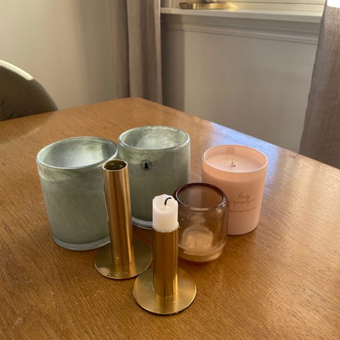 Selger en lyspakke med to stk duftlys, der den ene er noe brukt. Begge lukter helt fantastisk. Pakken inkluderer to matchende hvite telysholdere og en stk hvit telysholder fra serien vinterkvels 1905 - theodor kittelsen.