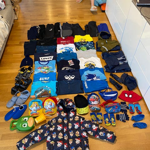 Det er 30 plagg pluss luer, sokker, hansker, votter, caps, sko, sekk/vesker og annet i tillegg. Noe nytt noe brukt, alt er veldig fint og selges smalet, sko 33
