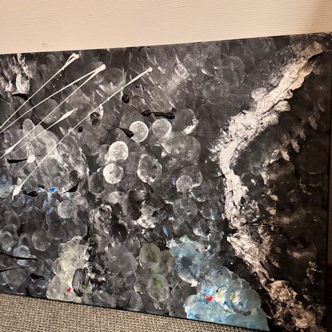 Selger et unikt og håndmalt kunstverk med tittelen «Just Breathe».