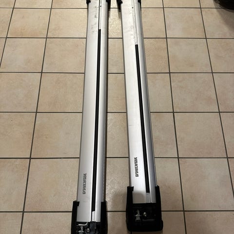 Lasteholdere /takstativ til Hyundai Ioniq 5. Vingeformet for lav luftmotstand, 75 kg pr stk. Låsbart og originalt til bil. Nypris ca 6 tusen.
