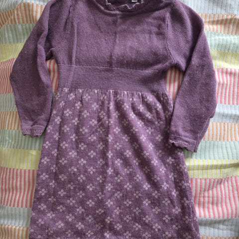 Mørkelilla ullkjole fra Name It. Størrelse 98. Medfølger ullstrømpebukse fra Woolland i hvitt.
