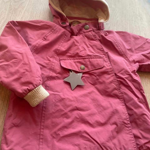 Vindtett jakke fra Miniature. Vannsøyle 8000mm. Størrelse 98. Dus gammelrosa farge (mener fargen heter pale wood rose).