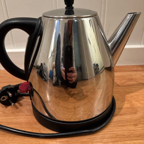 PrinsessVannkoker elektrisk med kapasitet på 1,5 liter. Rød farge med svart håndtak og lokk. Utstyrt med vannivåindikator på siden. Passer til oppvarming av vann til ulike husholdningsformål. Ikke plast, men metall.