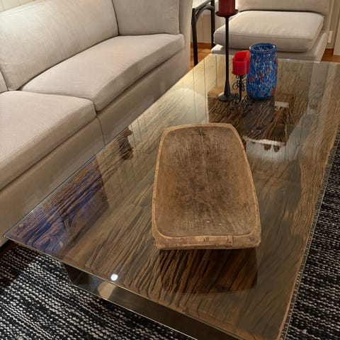 Tungt bord av glas. Ei lita stripe - viser knapt.