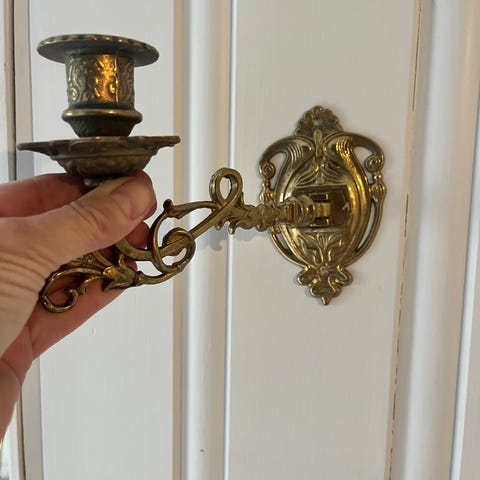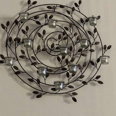 To veldig fine lysestaker for te-lys som skal henges på vegg. De er aldri brukt, men vist på utstillingsbord.