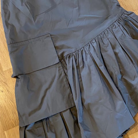 Sporty skjørt med stikklommer og snor som kan snurpes nederst, med et tykt fôr for kalde dager. Flott grågrønn farge.