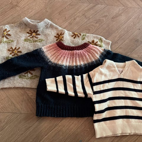 Pent og godt brukt klespakke med gensere, vest og skjorte i størrelse 86/92. Hele og fine klær med masse bruk igjen. Grønn genser har antydninger til flekker, se bilder, flekkfjerner er ikke prøvd.