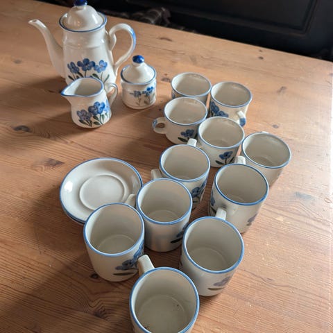 Selger 6 sett med kopp ,skål og asjett