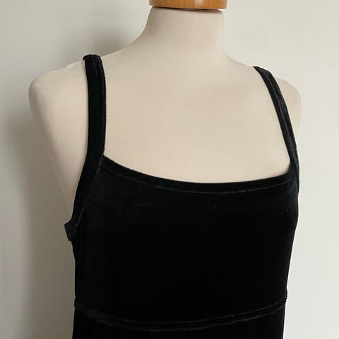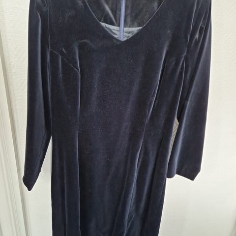 Nydelig kjole i myk fløyel fra 90-tallet, i en elegant fargeovergang fra lys lavendel til dyp midnattsblå. Stoffet har et vakkert spill i lyset, og gir et eksklusivt uttrykk med nostalgisk preg.