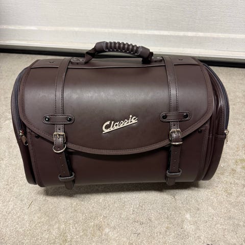 Vi har 1 stykk original skinnveske til Vespa igjen på lager. Til bruk på bagasjebrett. Førpris: 9585kr. Kan sendes.