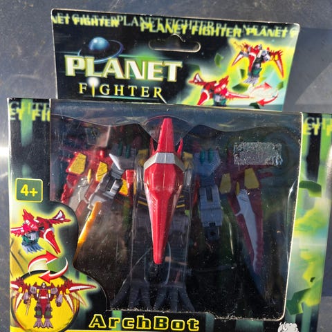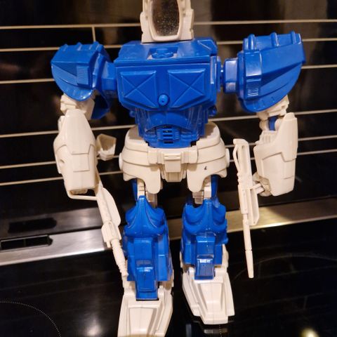 Roboten er i originalemballasjen – esken har litt slitasje, men selve figuren er helt ny og ubrukt.