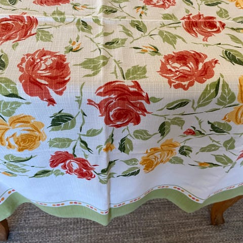 Ukjent merke Blomstermotiv Duk med rød, hvit. gul og grønn farge.