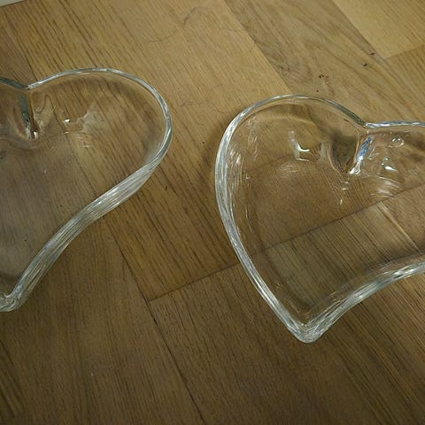 En tallerken har 3 brune prikker i glasuren (se nærbilde)