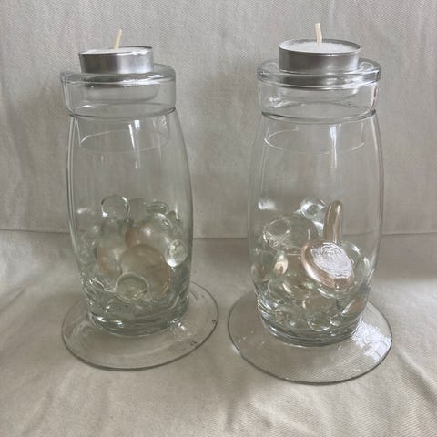 Bohus lysestaker i glass, brune, sett med 2 stk. Den ene lysestaken er høyere enn den andre, begge har en rund, dekorativ form. Passer til standard lys og kan brukes som dekorative elementer i hjemmet.