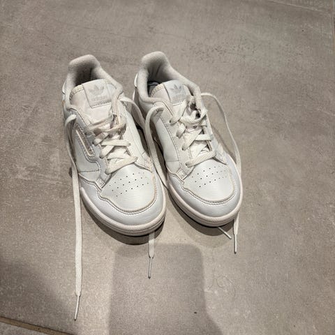 Adidas barnesko i størrelse 31, unisex modell. Skoene har svart overdel i skinn, med hvite detaljer og hvit såle. Skoene har borrelås for enkel justering.