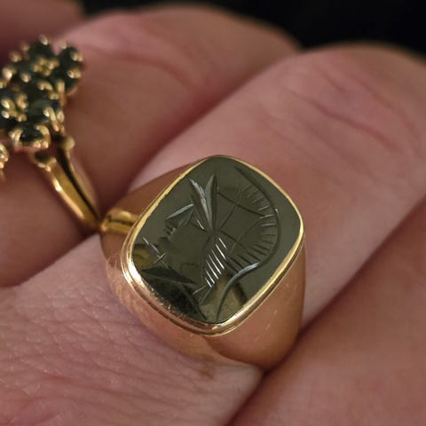 Ringen er laget i 18K Gull. Kjøpt i Athen i 1990.