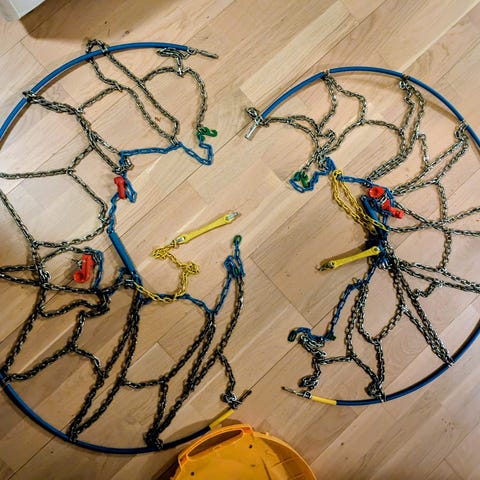 Kjettinger som er kjekke å ha i bagasjerommet. Se bilder for hvilke dekkdimensjoner de passer til.