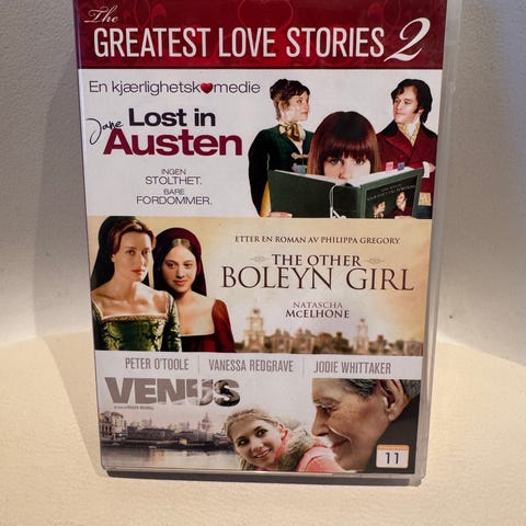 The Greatest Love Stories DVD inneholder tre filmer: Paris med Juliette Binoche og Romain Duris, Muriels Bryllup, og Stormfulle Høyder med Emily Brontë. DVD-en har norsk tekst og tilbyr totalt 6 timer spilletid.
