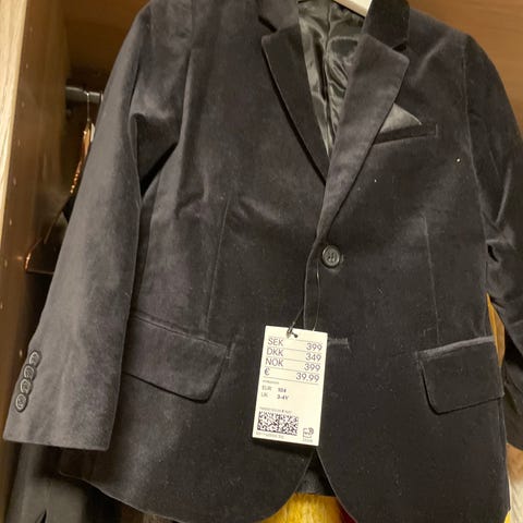 H&M Blå Blazer for gutt i størrelse 104. Jakken har langermet design og er egnet for barn i denne aldersgruppen.