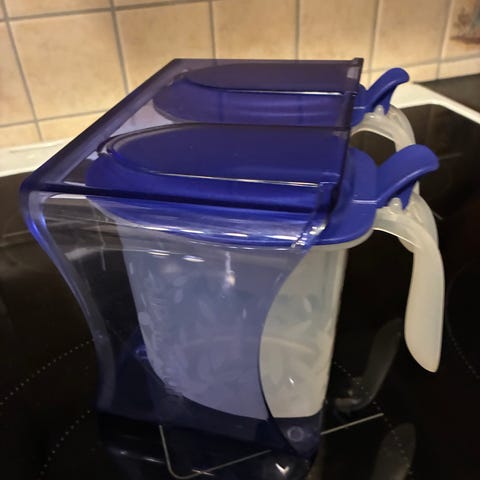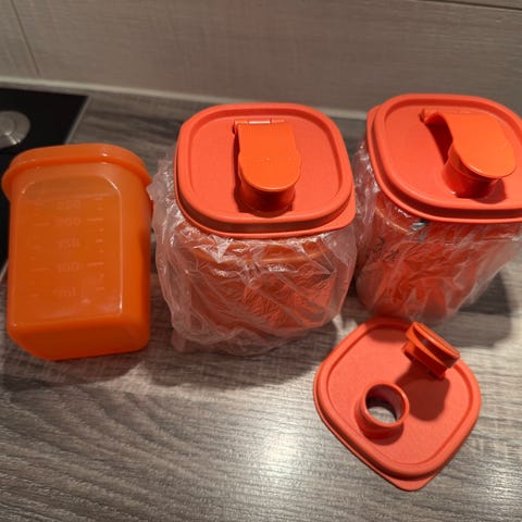 Selger denne flotte muggen frå Tupperware uten hank - men med godt grep! Rommer ca 1,1 liter og er praktisk i kjøleskapet eller på nattbordet. Pent og lite brukt.