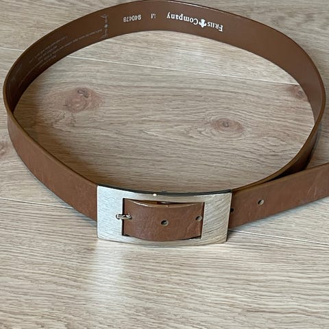 Dette fete Friis company belte selges da det ikke brukes. Beltet har en dekorativ spenne med detaljer og er laget av skinnmateriale. Passer til ulike antrekk og anledninger, pris er pr stk