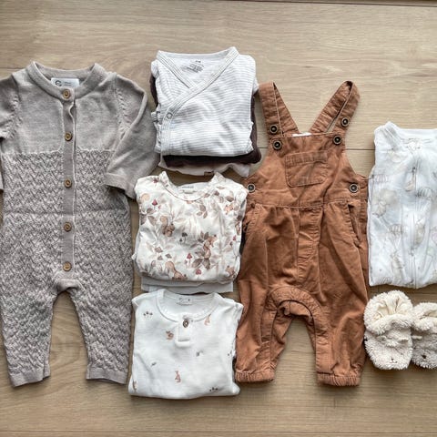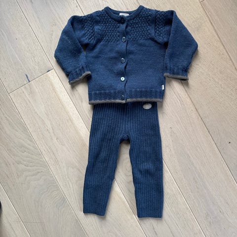 Klær i str. 62 fra Newbie, et sett fra Hust & Claire i bambus/viskose (uten nupper) og en ullue i str. 0 fra Kivat selges. Pent brukte klær uten flekker, foruten om litt misfarging på halsen på innsiden (innerfòret) på lua.