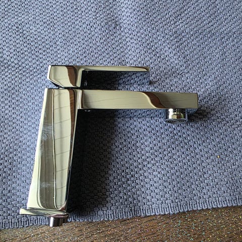 Moderne servantkraner i krom, 2 stk. Designet for baderomsvask med enkeltgrep for temperatur- og vannmengdekontroll. Materiale i metall med kromfinish, firkantet form.