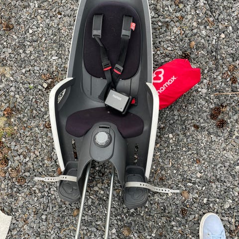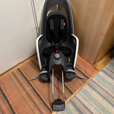 Hamax sykkelsete og regntrekk.