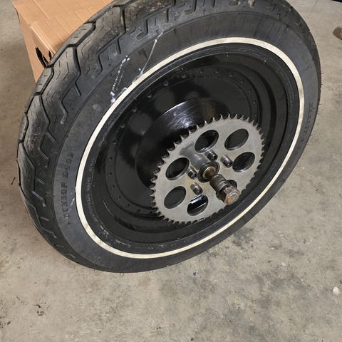 Harley fremhjul for 2 skiver med ok Dunlop dekk,ny balansert 1000.-