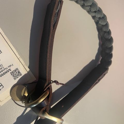 Halsbånd i skin til hund i str M fra Homme and Cottage. Selges da det ble for stor til vår lille venn, så vi kjøpte small.