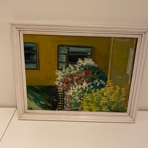 Maleriet gir et lekent og moderne uttrykk til rommet, og passer perfekt til deg som ønsker noe annerledes på veggen!