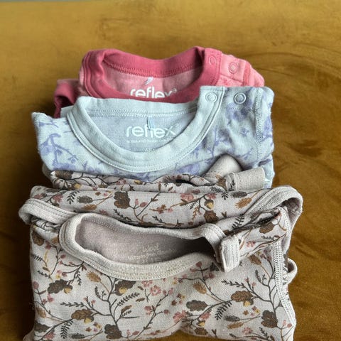 3 bodyer og 2 bukser fra Reflex. Str. 68.
