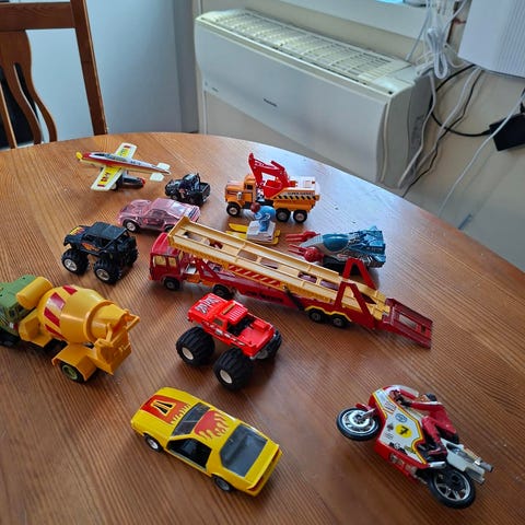 20 figurer er fra 1974, 8 -10 er fra 1990's og resten er fra 2000 oppover .Playmobil brannbil med tilbehør og et stort antall figurer og dyr. Settet inkluderer en rød brannbil med åpne dører og tak, flere Playmobil-figurer i ulike antrekk, samt ulike dyr som hester, hunder og skilpadder. Egnet for lek og samling.