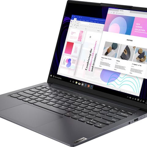 Lenovo Yoga Slim 7 Pro 14" bærbar PC utstyrt med en 4. generasjons AMD Ryzen™ 5-prosessor lar deg oppnå utrolige hastigheter, flytende bevegelser og fantastisk detaljerte bilder levert av 2,2K IPS-skjermen.