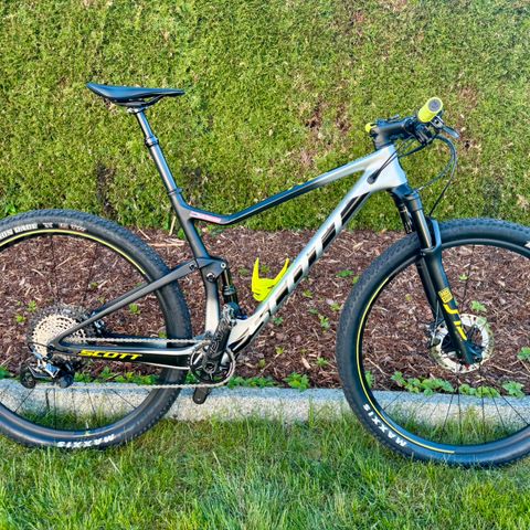 Oppgradert Scott Spark RC Team Issue i størrelse XL selges. Størrelsen XL passer personer mellom 185cm og 195cm, jeg selv er 191cm og den passer perfekt. Oppgradert med Syncros Silverton 1.0 karbonhjul. Sykkelen er brukt som treningssykkel i 1,5 sesong, så ikke kjørt veldig hardt. Rammelager og hjullager byttet ved behov, senest høsten 2025. I tillegg er slitedeler på drivverket byttet ut og demperene servet sommeren 2025.