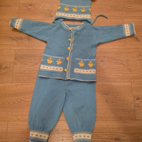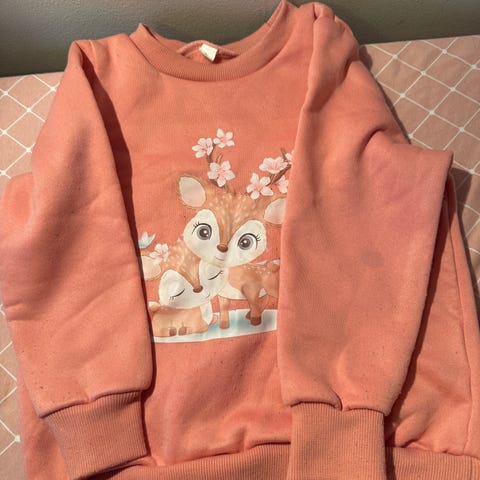 Blå genser til jente i størrelse 98 med trykk av en jentefigur med sommerfugler og blomster. Genseren har fleeceinnside for ekstra varme og komfort.
