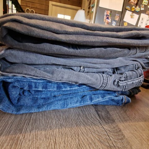 Selger 4 bukser samlet, en perfekt jeans fra Gina str 38, en Lee bukse str 29/33, en grønn bukse fra GAP str M og en blå bukse fra United colors of Benetton str M. Oppleves normale i str. Og passer en som er ca 165- 170 høy 😊