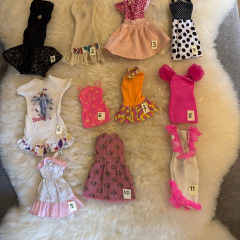 Barby klær . Pris er pr stk. se pris under hver enkelt bilde. Fra 10 kr oppover. Nummer 4 og 2 er ikke lenge.