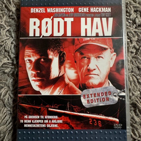 Crimson Tide DVD Extended Edition. Film med Denzel Washington og Gene Hackman. Inneholder ekstra materiale som 'The Making of Crimson Tide' og 'Deleted Scenes'.