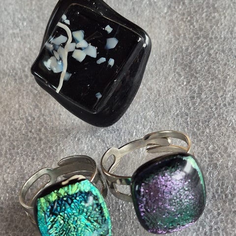 Vakre og lette ringer laget for hånd av små glassperler og naturperler. Hver ring er unik, elastisk og komfortabel å bruke – perfekt både alene eller kombinert med flere for en personlig stil.