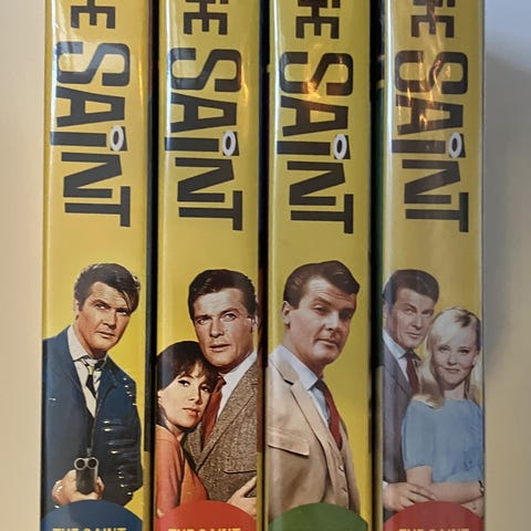 Gjenopplev The Saint, Helgenen på norsk, som ble sendt på Detektimen på NRK i en årrekke. Utgått samleboks med 30 episoder på 8 plettfrie disker, med norske undertekster.