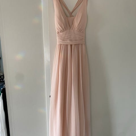 En lang festkjole i en dus ferskenfarge selges