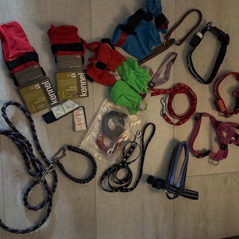 Diverse Trixie utstyrspakke til katt. Pakken består av to fôrskåler, flere leker (baller, mus med catnip), rødt halsbånd, flexibånd og Feliway spray. Produktene er brukt og selges derfor samlet for en billig penge. Selges helst samlet.