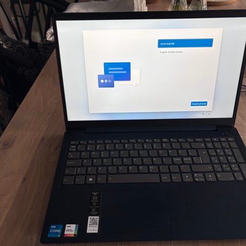 Samsung laptop med 15.6 tommers skjerm, sølvfarget chassis, Intel Core i3-prosessor, 8 GB RAM og 256 GB SSD-lagring. Passer for daglig bruk og generell kontorarbeid.