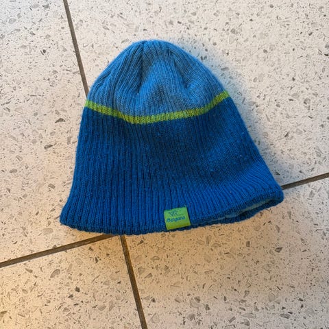 Varm og god lue som dekker ørene godt, og som er god i regn. Den kan være som en caps eller brette den bremmen inn. Den er i god stand og lite brukt fordi den ble for liten.