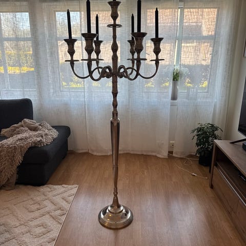 Selger en fin lysestake med 7 holdere. Selges da det ikke er plass i hus.