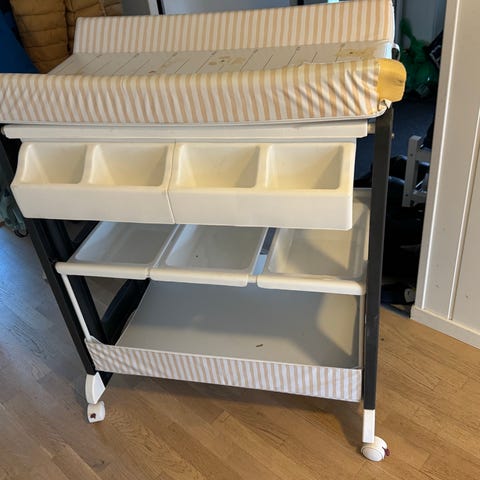 Funksjonelt sett er stellebordet greit men sømmene på plast-trekket på madrassen har sprukket i alle hjørner. Vi har lukket det med tape som fungerer men det finnes vel ny madrass å få tak i hvis man vil.